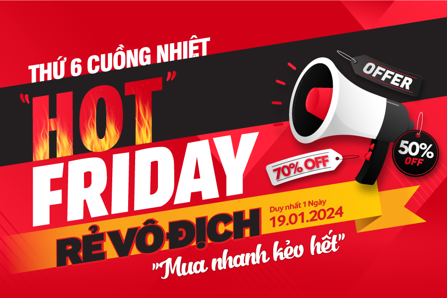 Thứ 6 cuồng nhiệt – Hot Friday, rẻ vô địch: Sale KHỦNG đến 70%, giảm thêm 10% thanh toán VNPay (19.01.2024)