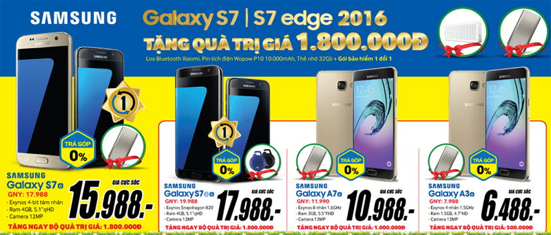"Siêu phẩm" mới 2016 Samsung Galaxy S7 & S7 Edge vừa chính thức ra mắt tại Việt Nam đã có mặt tại Mediamart, khi mua siêu phẩm này, các khách hàng sẽ được tặng bộ quà "Khủng" trị giá 1.800.000đ.