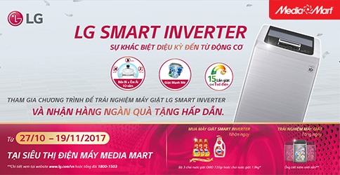 Cùng tham gia chương trình “LG Smart Inverter – Sự khác biệt diệu kỳ đến từ động cơ” để trải nghiệm dòng máy giặt lồng đứng LG mới ra mắt và nhận hàng ngàn phần quà tặng hấp dẫn!