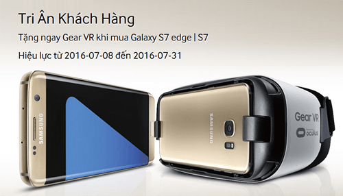 - Khách hàng sở hữu các sản phẩm điện thoại Samsung chính hãng dưới đây với thời gian mua hàng và kích hoạt bảo hành trên tổng đài 6060 trước ngày 25/06/2016 sẽ được lấy mã ưu đãi qua ứng dụng Galaxy Gift trên Galaxy A / S đang dùng, khi mua SAMSUNG Galaxy S7 / Galaxy S7 Edge sẽ được tặng thêm Kính thực tế ảo Samsung Gear VR trị giá 2.190.000VNĐ