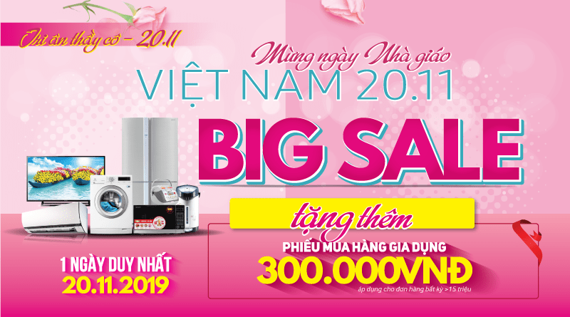 Với mục đích tri ân thầy cô nhân Ngày nhà giáo Việt Nam 20/11, kích cầu mua sắm dịp cuối năm, MediaMart trân trọng thông báo triển khai áp dụng Chương trình “Tri ân ngày Nhà giáo Việt Nam 20/11”cụ thể như sau: MediaMart đồng loạt giảm giá tới 50% các sản phẩm tivi, tủ lạnh, máy giặt, đồ gia dụng, thiết bị gia đình. Bên cạnh đó, MediaMart tặng ngay Phiếu mua hàng 300.000đ cho đơn hàng có tổng giá trị từ 15 triệu đồng trở lên và tặng thêm Phiếu mua hàng 200.000đ cho đơn hàng Phụ kiện có tổng giá trị từ 2 triệu đồng trở lên. Phiếu có giá trị sử dụng trong vòng 15 ngày kể từ ngày phát tặng.