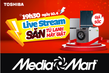 Đây là chương trình hợp tác giữa MediaMart và Toshiba Việt Nam nhằm mang đến cho khách hàng phương thức mua sắm TẠI NHÀ an toàn - tiết kiệm. Các sản phẩm Tủ lạnh, Máy giặt Toshiba đang được bán chạy nhất tại MediaMart đều được giới thiệu và mở bán trong Livestream với mức giá cạnh tranh hơn so với mức giá bán trên thị trường như: Máy giặt 7 Kg Toshiba AW-A800SV/WB lồng đứng giảm 23% giá chỉ 3.771.000đ; Máy giặt 7.5 Kg Toshiba TW-BH85S2V lồng ngang giảm 26% giá chỉ 6.490.000đ; Tủ lạnh Toshiba 180L Inverter GR-B22VU(UKG) giá chỉ 5.190.000đ; Tủ lạnh Toshiba 305L Inverter GR-AG36VUBZ(XK1) giá chỉ 8.990.000đ…