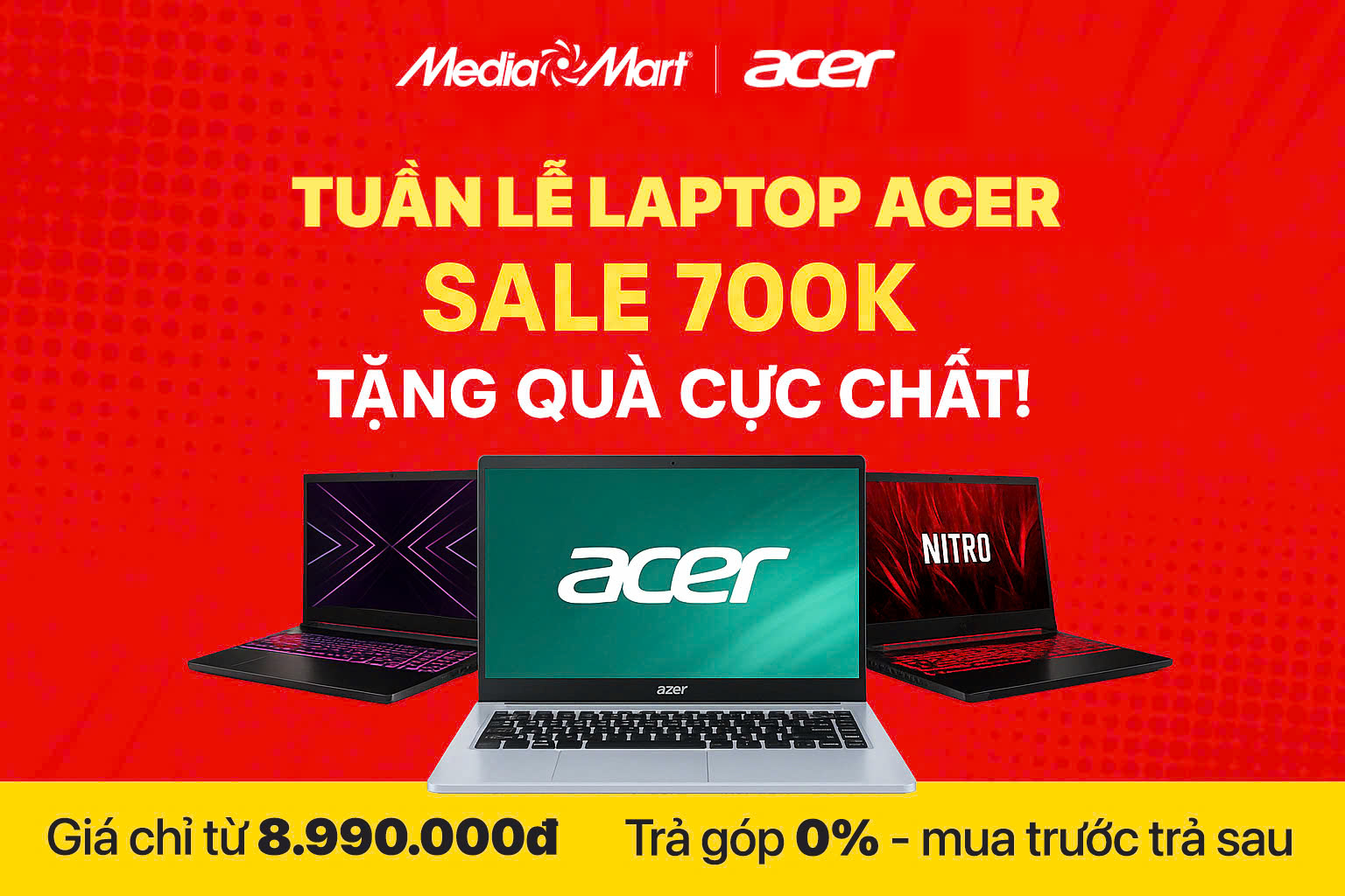 Cơ hội sở hữu laptop Acer hiệu năng cao, thiết kế thời trang, mỏng nhẹ dễ mang theo với giá chỉ từ 8.990.000 đồng chưa bao giờ dễ dàng như thế với Tuần lễ Laptop Acer - Giá cực cháy, quà cực chất diễn ra từ ngày 06/05 - 12/05/2025 tại hệ thống siêu thị điện máy MediaMart.