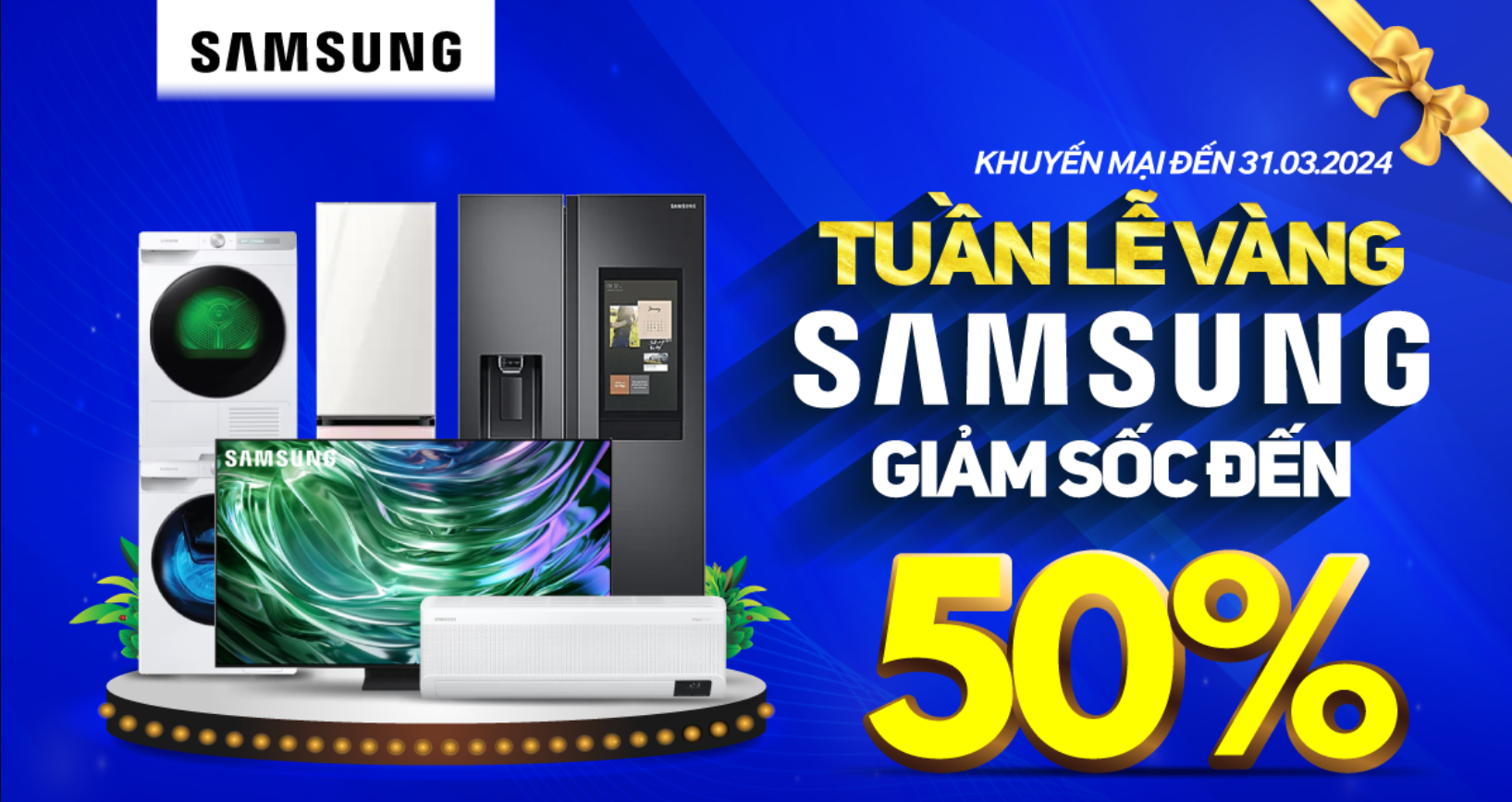 Từ lâu, Samsung đã trở thành một trong những thương hiệu đã trở nên quá quen thuộc đối với người tiêu dùng Việt. Các sản phẩm điện tử, gia dụng của hãng luôn được săn đón bởi không ngừng cải tiến về chất lượng, mẫu mã. Thấu hiểu được điều đó, MediaMart gửi tới khách hàng chương trình ưu đãi “Tuần lễ vàng Samsung”. Theo đó, hàng loạt sản phẩm như TV, máy giặt, điều hòa…  sẽ được giảm giá lên đến 50%. Khi mua sản phẩm quý khách còn nhận được các ưu đãi siêu khủng như: