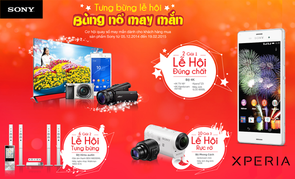 Chào đón mùa mua sắm cuối năm, từ ngày 5/12/2014 đến 19/2/2015, Media Mart phối hợp cùng Sony Việt Nam thực hiện chương trình quay số may mắn dành cho các khách hàng mua điện thoại di động Sony với tên gọi “Tưng bừng lễ hội – Bùng nổ may mắn”