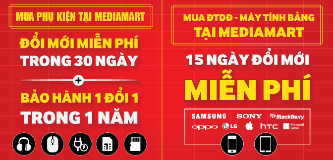 1. Mua Phụ kiện tại Mediamart : ĐỔI MỚI MIỄN PHÍ TRONG 30 NGÀY + BẢO HÀNH 1 ĐỔI 1 MIỄN PHÍ TRONG 1 NĂM
