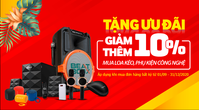 Ưu đãi Giảm thêm 10% Loa kéo, Phụ kiện Công nghệ khi mua đơn hàng bất kỳ