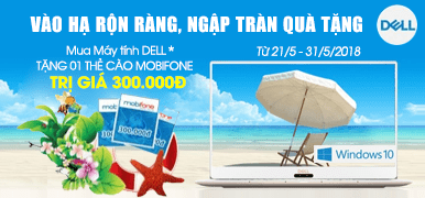 Từ ngày 21/05 - 31/05, Siêu thị điện máy Mediamart phối hợp cùng Dell trân trọng mang tới Qúy khách hàng chương trình ưu đãi đặc biệt "Vào hạ rộn ràng, ngập tràn quà tặng" với quà tặng hấp dẫn là 01 thẻ cào điện thoại trị giá 300.000VNĐ.