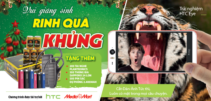Bước vào Mùa Giáng sinh, Media Mart cùng với thương hiệu điện thoại HTC gửi đến Quý khách hàng chương trình ưu đãi hấp dẫn "Vui Giáng sinh Rinh Quà Khủng". Theo đó, Quý Khách hàng mua các sản phẩm smartphone HTC sẽ được tặng thêm hàng ngàn quà tặng giá trị. Chương trình được áp dụng trên toàn Hệ thống thế giới điện máy Media Mart , từ 06/12 – 25/12/2014.