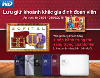 - Mua bất kỳ sản phẩm WD My Passport Ultra 2TB, WD My Passport New Ultra 2TB, WD My Passport Ultra Metal 2TB trong thời gian khuyến mãi được tặng 01 hộp bánh trung thu Sofitel