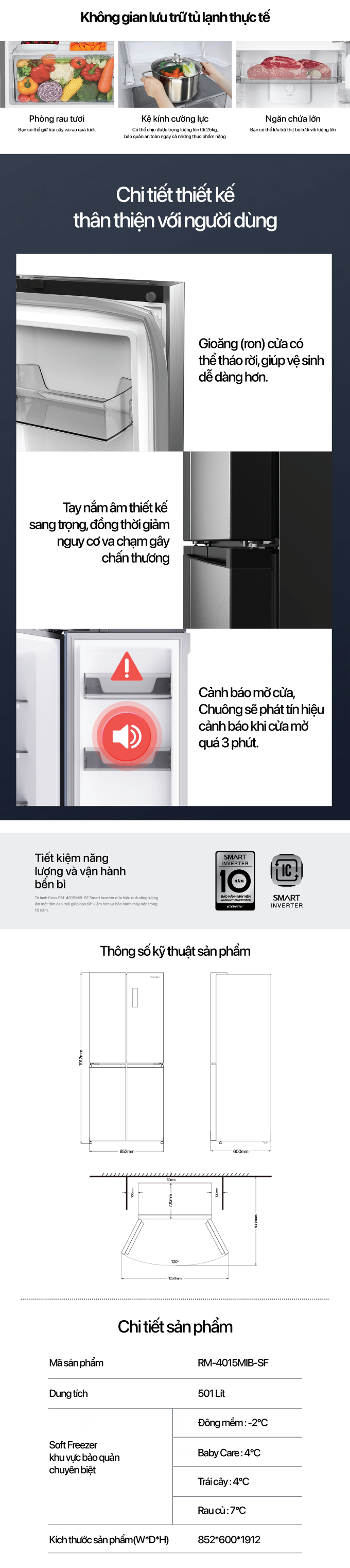 Trong cuộc sống hiện đại, một chiếc tủ lạnh không chỉ đơn thuần là nơi lưu trữ thực phẩm mà còn là điểm nhấn nội thất quan trọng. Tủ lạnh 4 cửa Inverter 501L COEX RM-4015MIB-SF chính là sự lựa chọn hoàn hảo khi kết hợp giữa vẻ đẹp thẩm mỹ và công năng vượt trội.