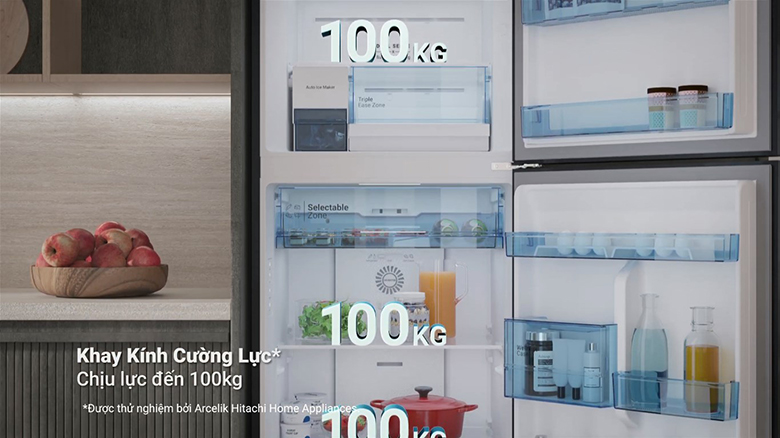 Bên trong, tủ lạnh Hitachi HRTN6443SAGBKVN được chia thành nhiều ngăn với các khay kính chịu lực chắc chắn, giúp bảo quản thực phẩm an toàn, kể cả những món có khối lượng lớn. Để phù hợp với các vật phẩm được lưu trữ, ngăn chứa ở cửa dễ dàng điều chỉnh độ cao, đảm bảo tính thực dụng và độ an toàn được thiết kế mang đến sự tiện lợi.