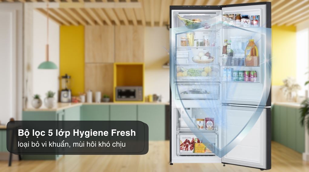 - Bộ lọc 5 lớp Hygiene Fresh có khả năng loại bỏ vi khuẩn, khử mùi hiệu quả giúp thực phẩm luôn tươi ngon, sạch khuẩn, góp phần bảo vệ sức khỏe cho người dùng.