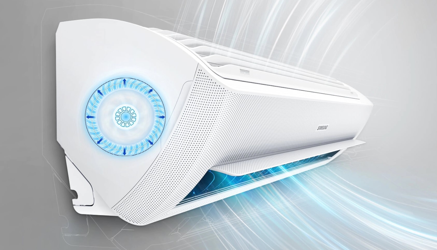 Nhắc đến LG rồi thì không thể bỏ qua người đồng hương Samsung. Những dòng máy lạnh của hãng được đánh giá cao về vẻ ngoài cao cấp, sang trọng, điển hình là thiết kế tam diện ra mắt khoảng năm 2017. Ngoài ra, hãng cũng luôn cố gắng để nới rộng diện tích hút/thổi gió, kích thước cánh quạt để tăng khả năng tỏa hơi lạnh.