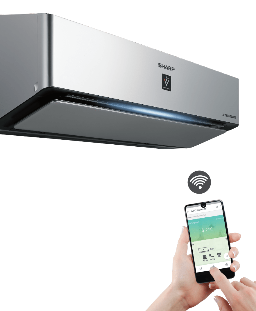 Máy điều hòa IoT sẽ được điều khiển từ xa, thậm chí bên ngoài không gian nhà ở của bạn thông qua ứng dụng trên điện thoại (hệ điều hành Android hoặc IOS). Chỉ cần kết nối Internet, bạn có thể dùng điện thoại để điều khiển máy điều hòa nhà bạn bất cứ ở đâu và bất cứ khi nào bạn muốn. Bên cạnh việc điều khiển từ xa, máy điều hòa thông minh IoT còn có khả năng đo lường các chỉ số về nhiệt độ, độ ẩm và phân tích tình trạng không khí để báo cáo cho người sử dụng. Mở máy điều hòa trước khi về nhà để tận hưởng căn phòng dễ chịu ngay khi vừa về đến. Điều khiển bằng điện thoại thông minh còn hữu dụng hơn nếu bạn rời nhà mà quên tắt máy điều hòa. Với khả năng hiển thị vượt trộitừ màn hình điện thoại thông minh, bạn có thể kiểm tra hoạt động của máy điều hòa, tình trạng phòng và điện năng tiêu thụ. Có thể kiểm soát và điều khiển mọi hoạt động của máy điều hòa từ xa, bạn sẽ thấy cuộc sống trở nên dễ dàng và thuận tiện không ngờ với điều hòa thông minh IoT của SHARP.