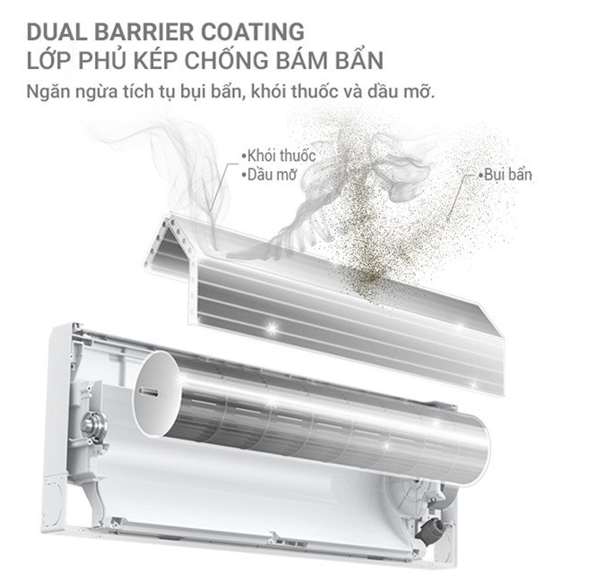 Một lớp phủ đặc biệt (blue fin) được tráng lên hệ thống trao đổi nhiệt của dàn nóng giúp chống lại khả năng ăn mòn của muối biển