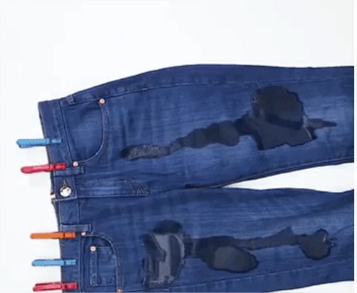 - Và chỉ một lúc sau thì chiếc quần jean vừa mới ướt nhẹp đã khô nhanh tức thì.