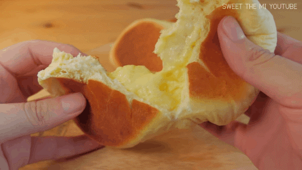 Sau đó cán bột phẳn rồi đặt một thìa súp nhân kem vào giữa, bọc bột kín nhân kem.