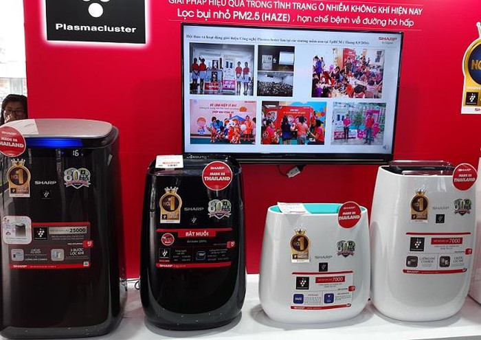 Ghi nhận tại các cửa hàng điện máy MediaMart, Nguyễn Kim, Thiên Hòa (quận 3), siêu thị điện máy Chợ Lớn... các thương hiệu máy lọc không khí được bày bán chủ yếu đến từ Sharp, Panasonic, Coway, Daikin,... Giá các sản phẩm này dao động từ 2,8 triệu đến 5,99 triệu đồng/cái với dòng máy bình dân, một số dòng máy cao cấp có thêm các chức năng tạo ẩm, tạo ra không khí có chất khoáng, chức năng bắt muỗi... có giá từ 7,9 triệu đến 38,9 triệu đồng/cái.