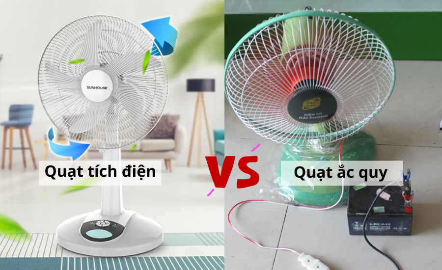Bảng so sánh quạt tích điện và quạt ắc quy