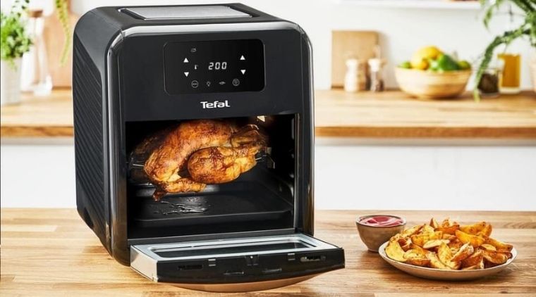Nồi chiên không dầu Tefal FW501815 có dung tích 11 lít, công suất 2000W có thể nướng được gà nguyên con dưới 1,7kg một cách nhanh chóng, dễ dàng.