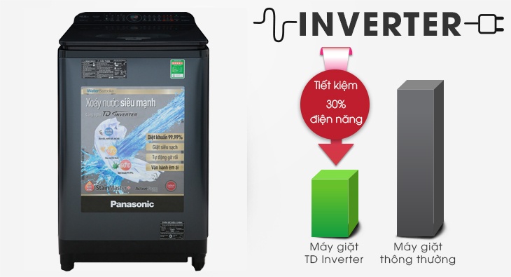 Trong khi đó, động cơ TD Inverter cải tiến của Panasonic được điều khiển bởi động cơ BLDC và bộ truyền chuyển động thế hệ mới, giúp tạo ra luồng xoáy nước siêu mạnh Water Bazooka, đánh bay vết bẩn cứng đầu, giặt sạch hơn tới 16%.