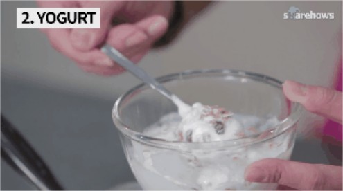 - Đổ khoảng 600 - 700ml sữa tươi vào bát thủy tinh rồi quay lò vi sóng 2 phút. Sau đó đổ hết một lọ sữa chua lên men vào và khuấy đều cùng sữa tươi.