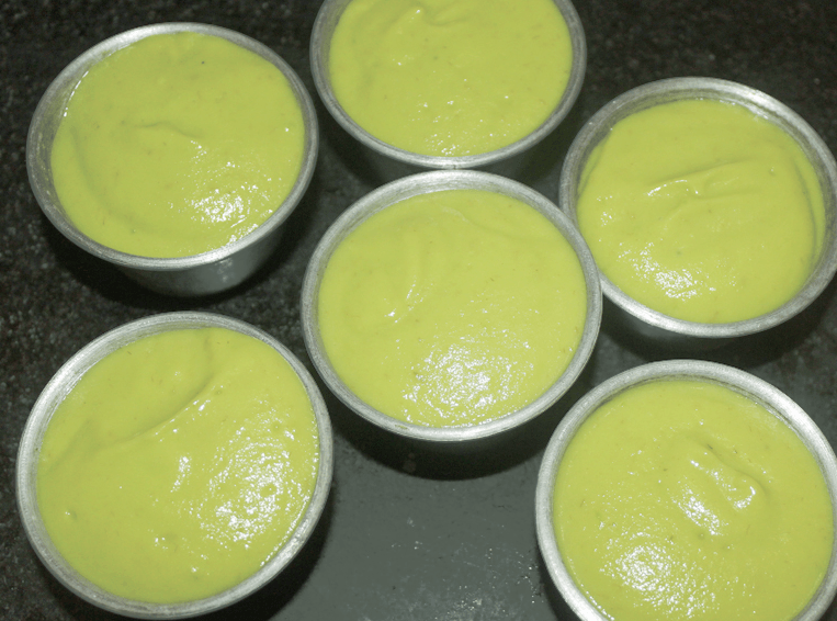 Đun nhỏ lửa phần bơ xay ở bước 1. Khi bơ sôi lăn tăn, đổ nước gelatin vào đun tiếp, khuấy đến khi tan hết gelatin thì tắt bếp, đổ bơ vào khuôn. Đợi bơ nguội, để vào tủ lạnh 3-4 tiếng để bơ đông lại