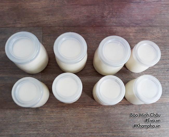 Bước 3: Chuẩn bị lọ thủy tinh để đựng sữa chua (rửa sạch để khô), dùng muôi nhỏ múc sữa chua vào từng lọ cho đầy đến miệng lọ rồi đậy nắp cho khít.