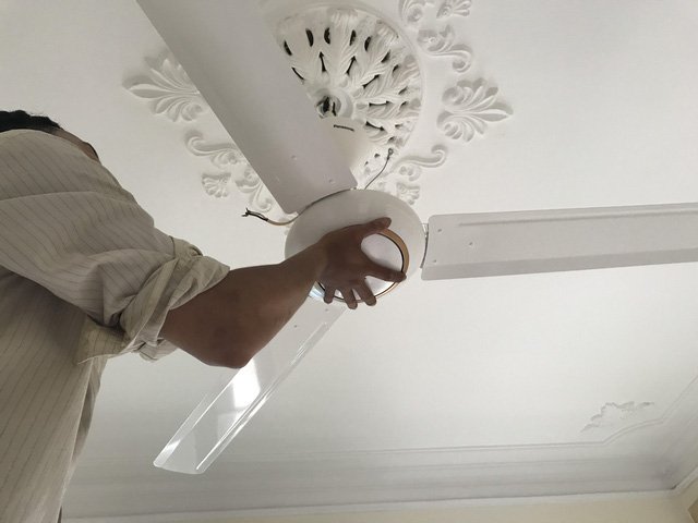 "Giờ đây đời sống người dân cao hơn nên cũng ít người mua quạt điện cơ lắm", anh Chiến nói. Anh cho biết một buổi chiều thứ 7 đã lắp quạt cho từ 4-5 hộ gia đình.