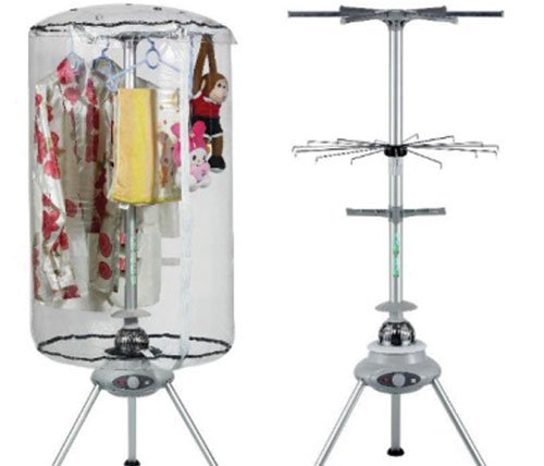 Nhỏ gọn và cơ động, có giá từ 1-2 triệu đồng/chiếc là loại máy hình trụ của Filingger, Otto, Saiko, Mimosa, Thiên Thanh... phù hợp với tiêu chí “ngon, bổ, rẻ” của đại đa số các gia đình Việt Nam, đặc biệt là những gia đình ở chung cư hoặc chật chội, thiếu không gian phơi quần áo. Cấu tạo của máy sấy khá đơn giản, gồm máy sấy điện trở, liên kết với bầu sấy là trục chính cũng là trụ có ba cánh tay đòn làm nơi mắc quần áo. Bao bọc bên ngoài là buồng bằng màng nhựa có dây kéo. Dù một số loại có thêm tính năng chống nấm mốc, nhìn chung nhược điểm của loại máy dạng này tốn điện, ồn.