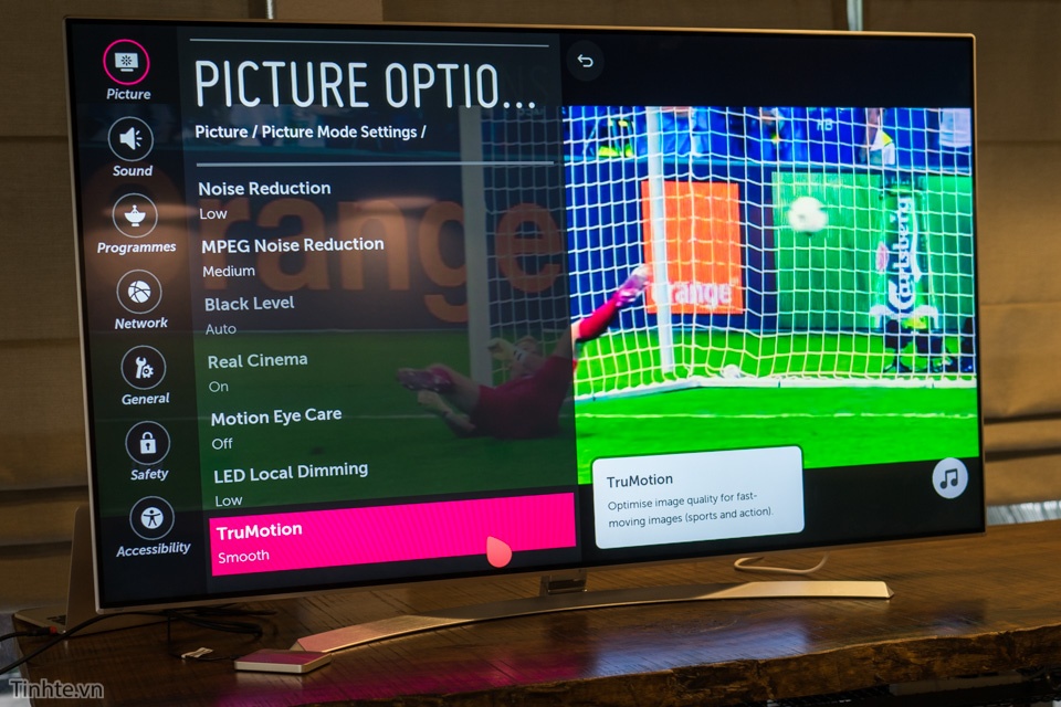 Quy tắc của cách chỉnh TV để tối ưu cho bóng đá là dựa vào việc điều chỉnh tần số quét ảo của TV. Trong trường hợp của LG là tính năng Trumotion. Trong minh hoạ này thì mình sẽ sử dụng TV LG UH950T. Mình sẽ hướng dẫn các bạn từng bước một, từ đơn giản đến nâng cao.
