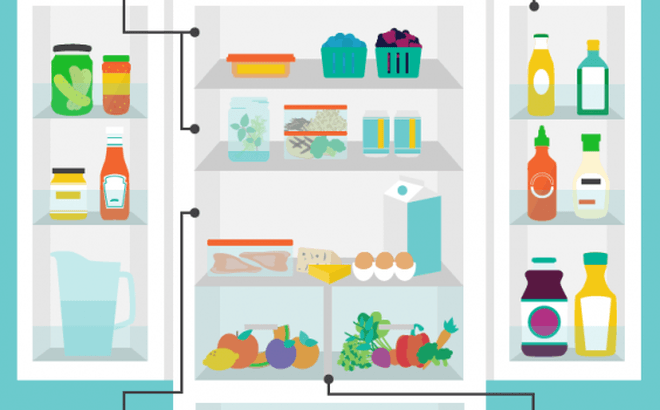 Hãy nhìn bảng mô tả bên dưới xem bạn đã phân loại đồ ăn đúng cách và đúng vị trí trong tủ lạnh hay chưa nhé!