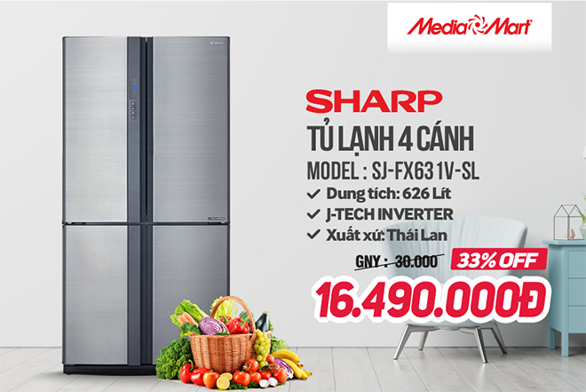 Nếu bạn đang muốn sắm một chiếc tủ lạnh cao cấp, dung tích lớn với mức giá dưới 20 triệu đồng thì Sharp SJ-FX631V-SL 626 lít là một sự lựa chọn đáng cân nhắc. Mức giá niêm yết của sản phẩm này là 30 triệu đồng hiện đang được MediaMart giảm giá chỉ còn 16,49 triệu đồng.