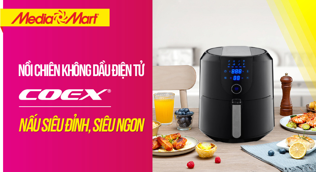 Với khả năng chế biến món ăn siêu nhanh, màu sắc thành phẩm bắt mắt, giữ trọn vẹn dinh dưỡng, nồi chiên không dầu điện tử cao cấp 5.5L COEX AFC -3127A xứng đáng góp mặt trong căn bếp của bạn và gia đình. Để sở hữu sản phẩm này, bạn cần bỏ ra số tiền là 2.690.000đ, bảo hành sản phẩm tới 24 tháng. Ngoài ra, bạn còn nhận được chế độ hậu mãi vô cùng hấp dẫn: 1 đổi 1 trong 6 tháng. (* Chi tiết liên hệ MediaMart)