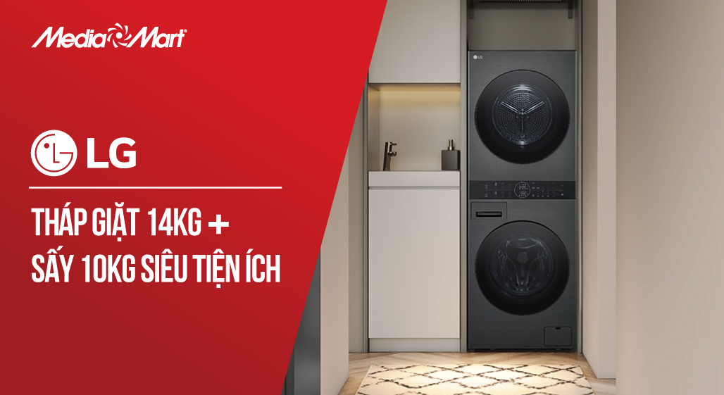 Có thể nói, tháp giặt sấy LG không chỉ là một thiết bị điện máy thông thường, mà còn là người bạn đồng hành giúp mỗi gia đình tiết kiệm thời gian, tận hưởng sự gọn gàng và tiện nghi trong từng khoảnh khắc. Và đặc biệt, sản phẩm chính hãng hiện đã có mặt tại MediaMart – nơi mang đến cho bạn những lựa chọn chất lượng cùng mức giá ưu đãi hấp dẫn. Hãy đến ngay hệ thống MediaMart gần nhất để trải nghiệm và sở hữu cho gia đình mình sự tiện nghi trọn vẹn này nhé!