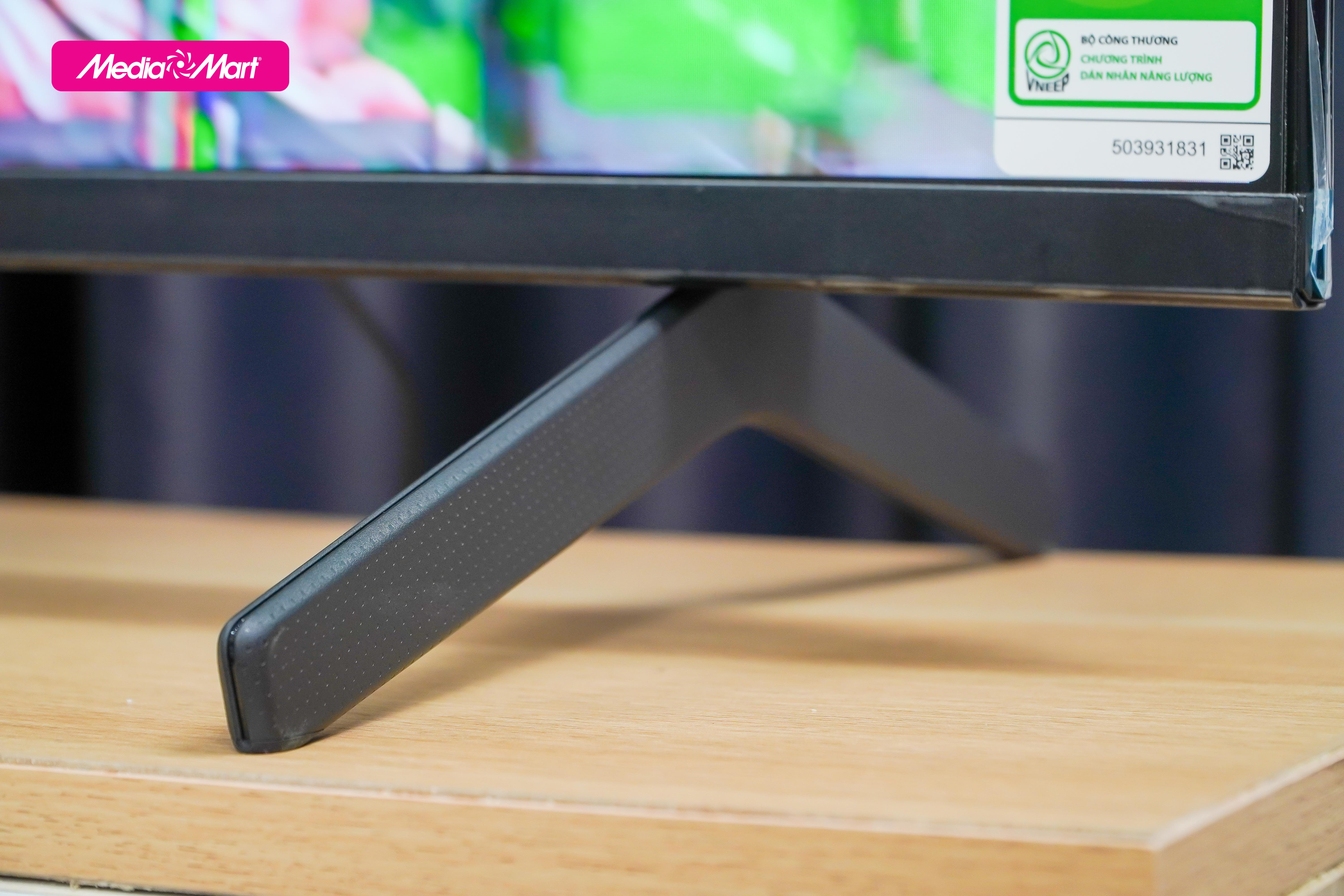 Tivi có kiểu dáng thanh lịch, chân đế chữ V úp ngược với lỏi kim loại phủ nhựa cao cấp, chắc chắn, dễ dàng bố trí gọn đẹp trong mọi không gian.